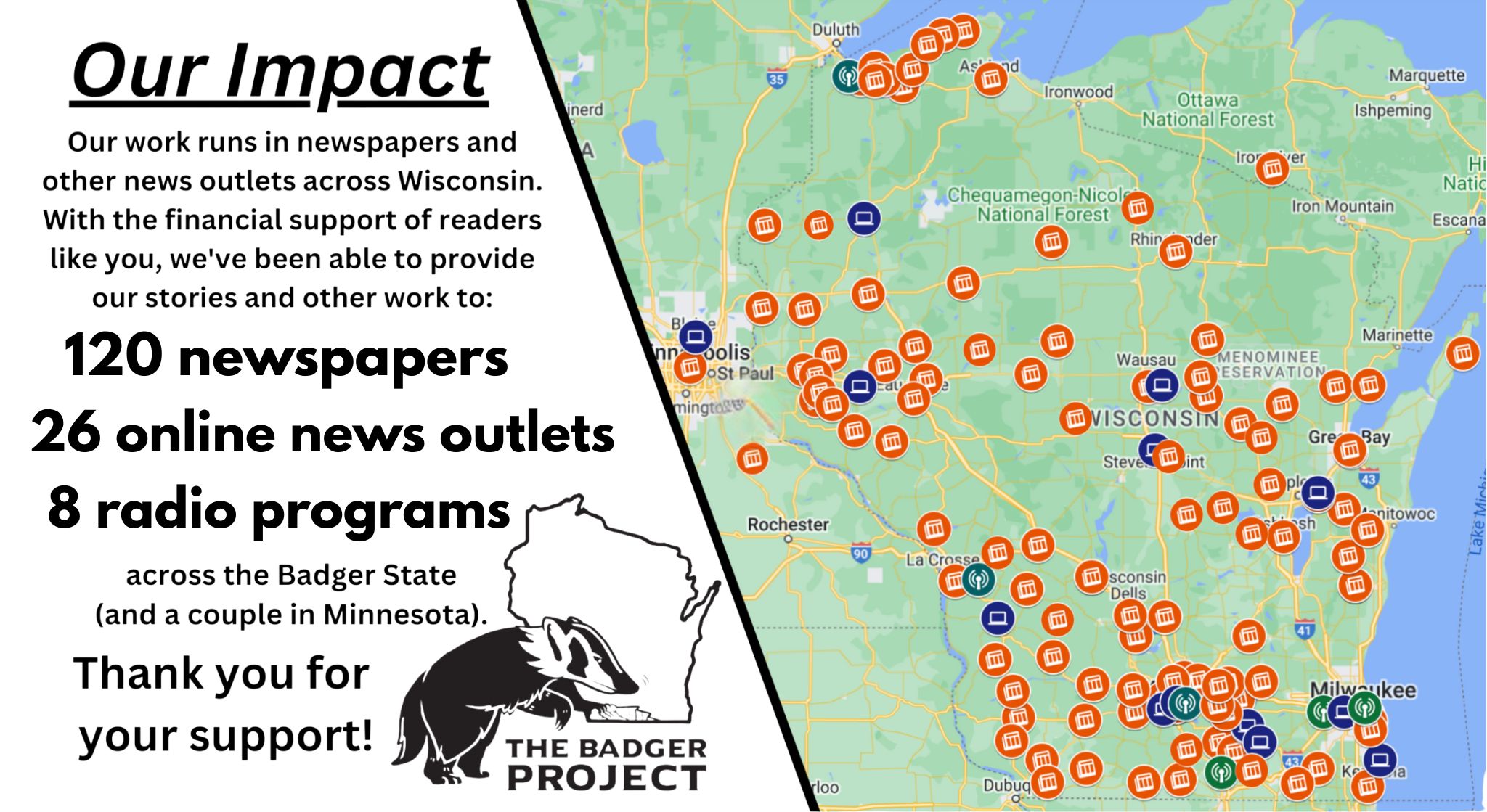 The Badger Project’s work has appeared in more than 150 news outlets across Wisconsin: